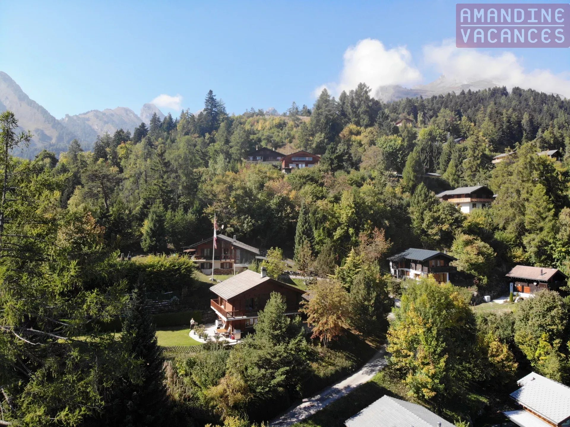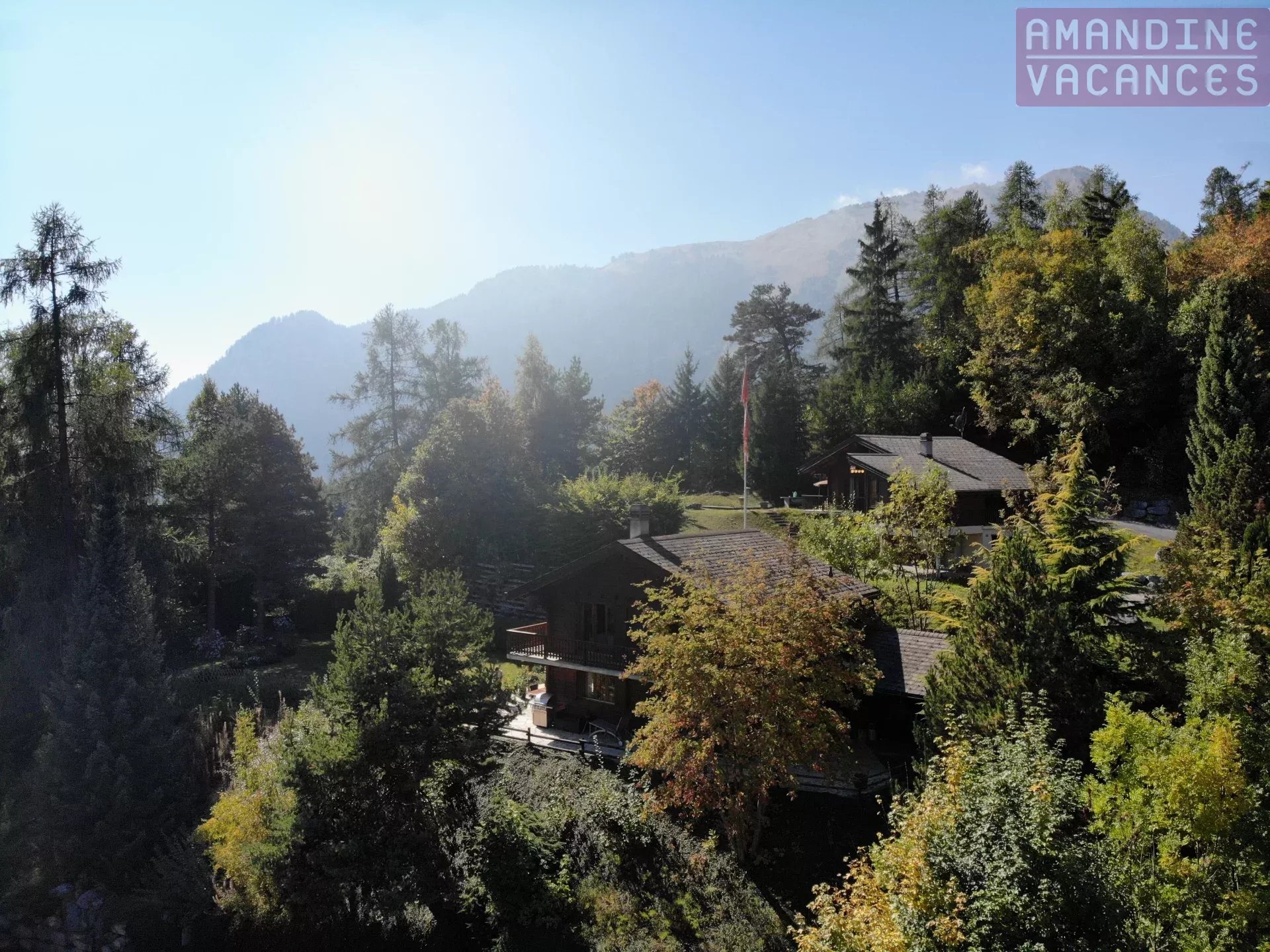 Situé aux Mayens de Chamoson, ce chalet de 5 pièces en bois allie charme rustique et atmosphère chaleureuse.